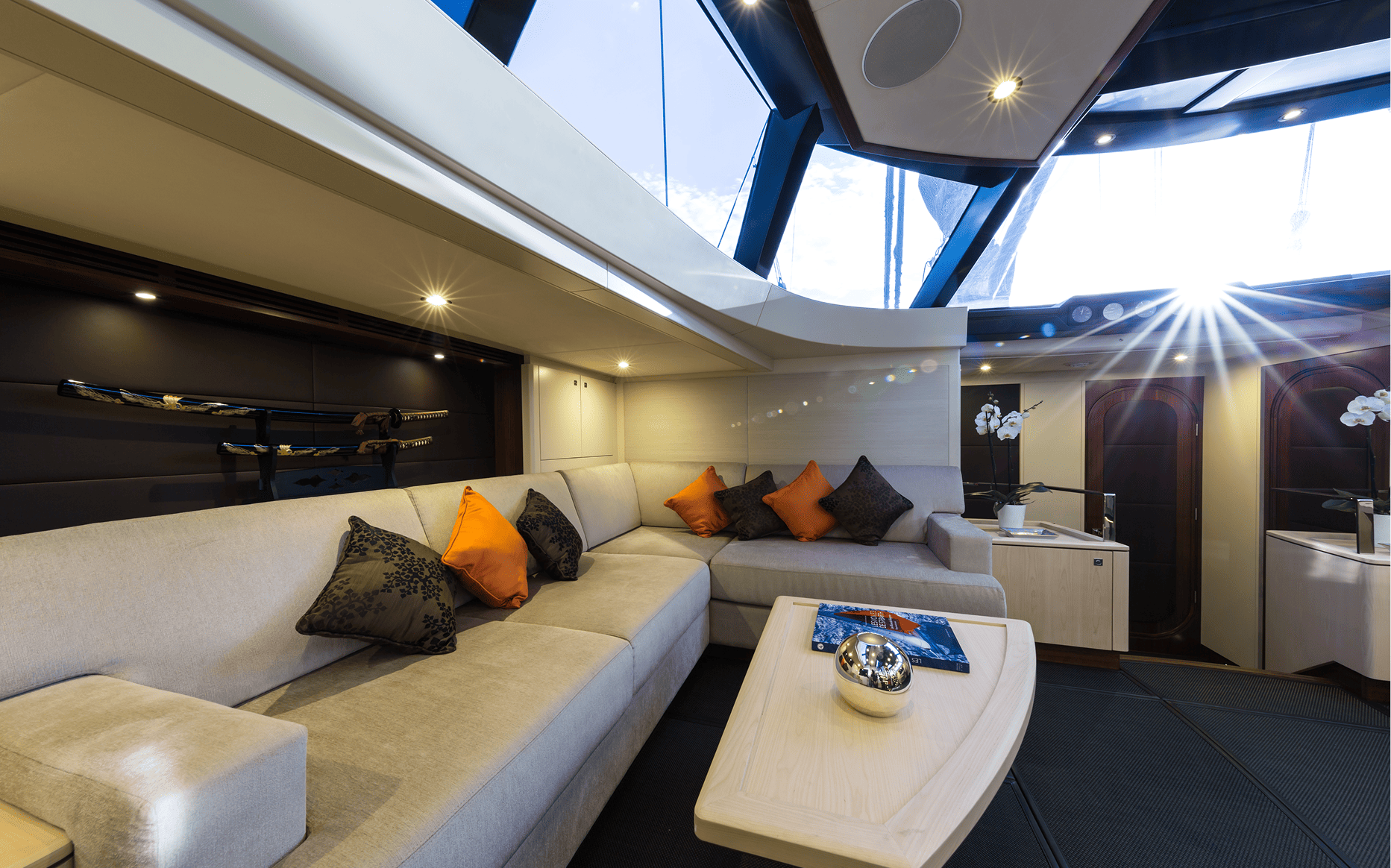 The shipyard also worked closely with the designer Jakko Jämsén on the styling of the external areas, along with Design Unlimited on the interior design. “At the time of her build, Pink Gin VI had pushed the design boundaries in terms of her colourful and playful interior design,” says Design Unlimited’s founder, Mark Tucker. “Her new owner, however, was looking for a more serene Scandinavian style, with neutral tones and natural materials replacing the original’s more eclectic furnishings. We had all of the interior design and system drawings, so for us this was really straightforward – we were excited to reimagine and refresh one of our original designs.”