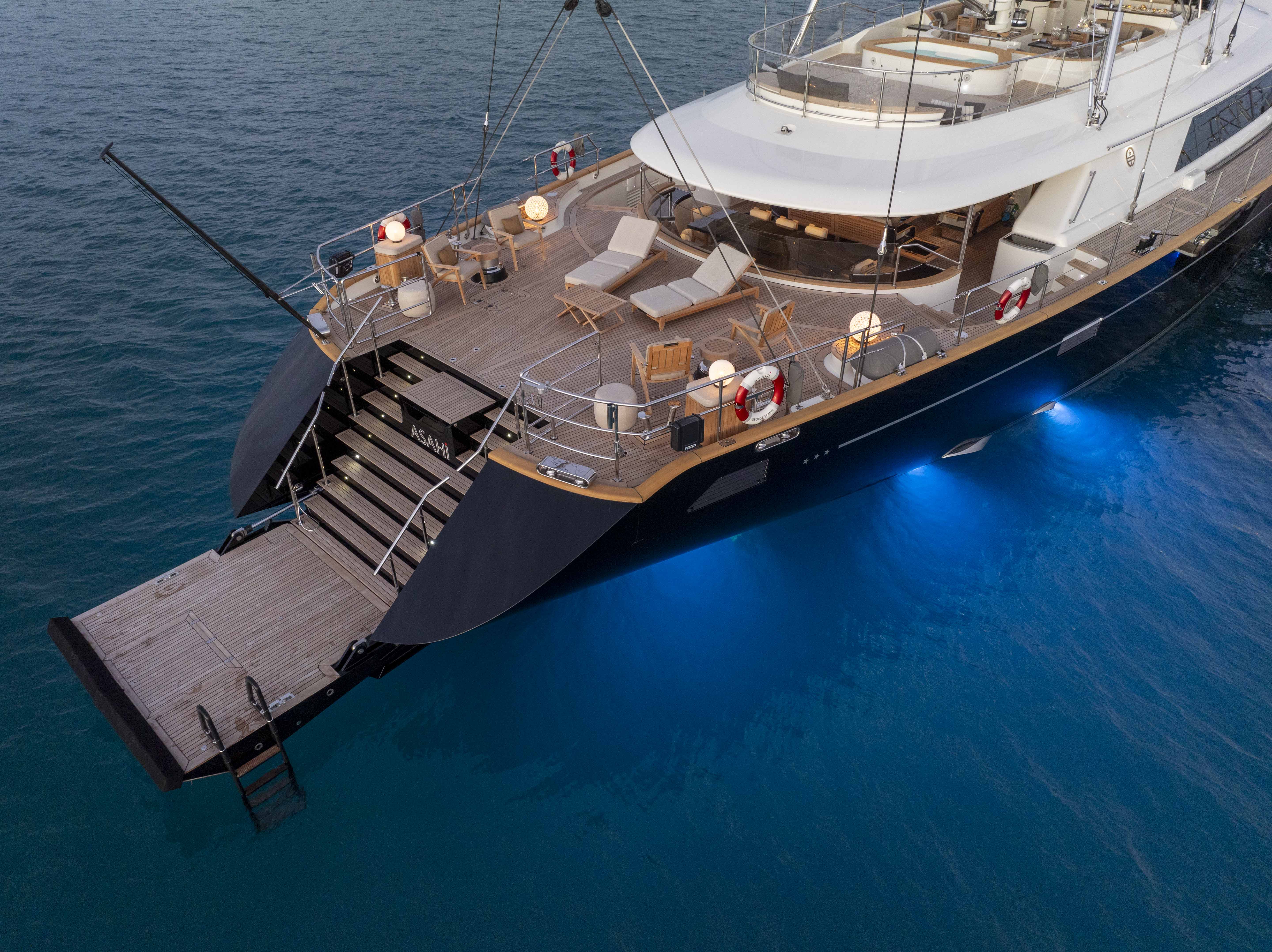 Asahi’s Sydney-born Captain Angus Biffin – widely known as ‘Biff’ – hit upon his own passion for sailing at a young age. Fast-forward through the many miles he travelled across the oceans, and Biff found himself involved in the purchase of Asahi in 2019. “From the get-go, we have always intended for her to be a successful watersports-oriented charter yacht,” he says, referring to the ambition he shares with his nine other dedicated crew members. With room to accommodate up to 12 guests across six cabins, as well as indoor and outdoor space, Asahi has many appealing features. “But I would say that the crew are her key element,” Biff argues. “Seventy-five per cent are the same as when the yacht was purchased. We are a very close-knit team, and all enjoy being out on the water.”