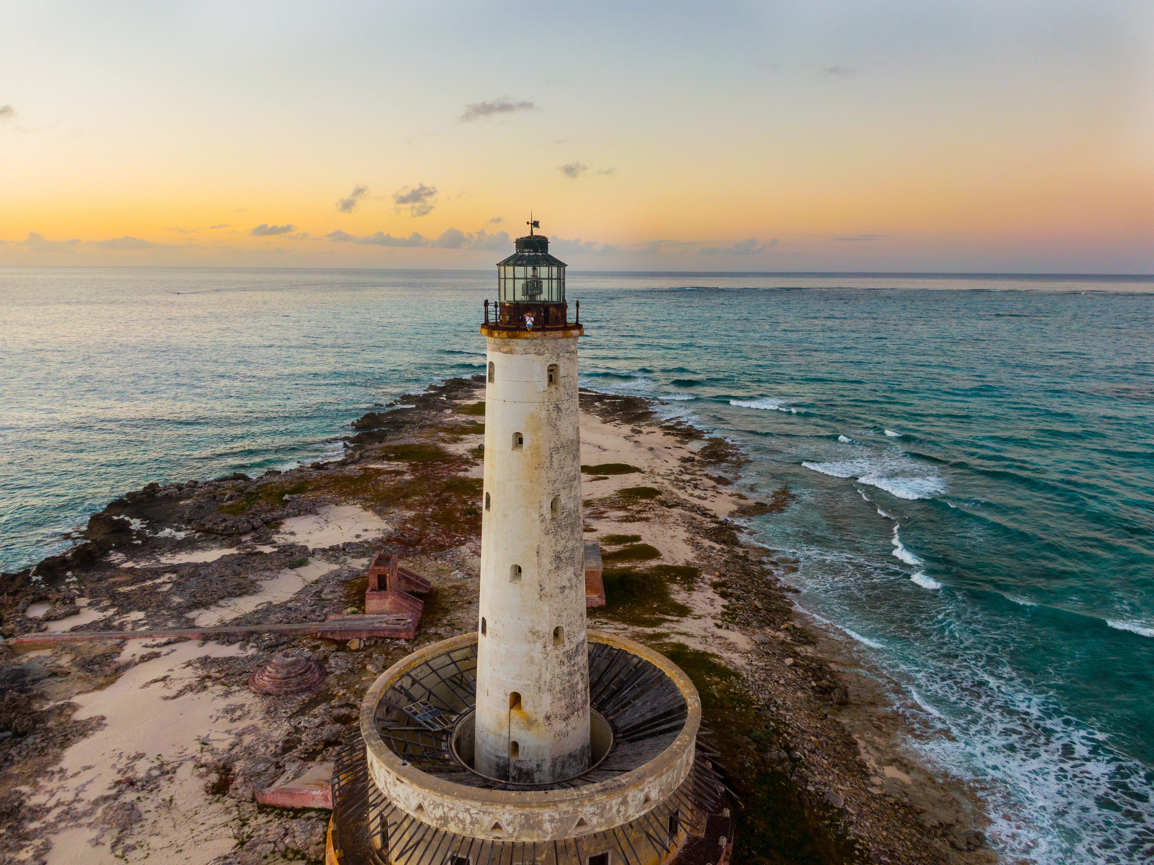 The entrance to the Northeast Providence Channel welcomes ships and Superyachts into the Bahamas. Hole-in-the-Wall Lighthouse on the southern tip of Great Abaco Island is worth anchoring at. It is 20 miles to the nearest human habitation by land, and more than 30 to Spanish Wells and Harbour Island – and wildly spectacular. Built in 1836 by the Imperial Lighthouse Service, it towers 77 feet above land and includes walkways to the surf and outlying buildings.