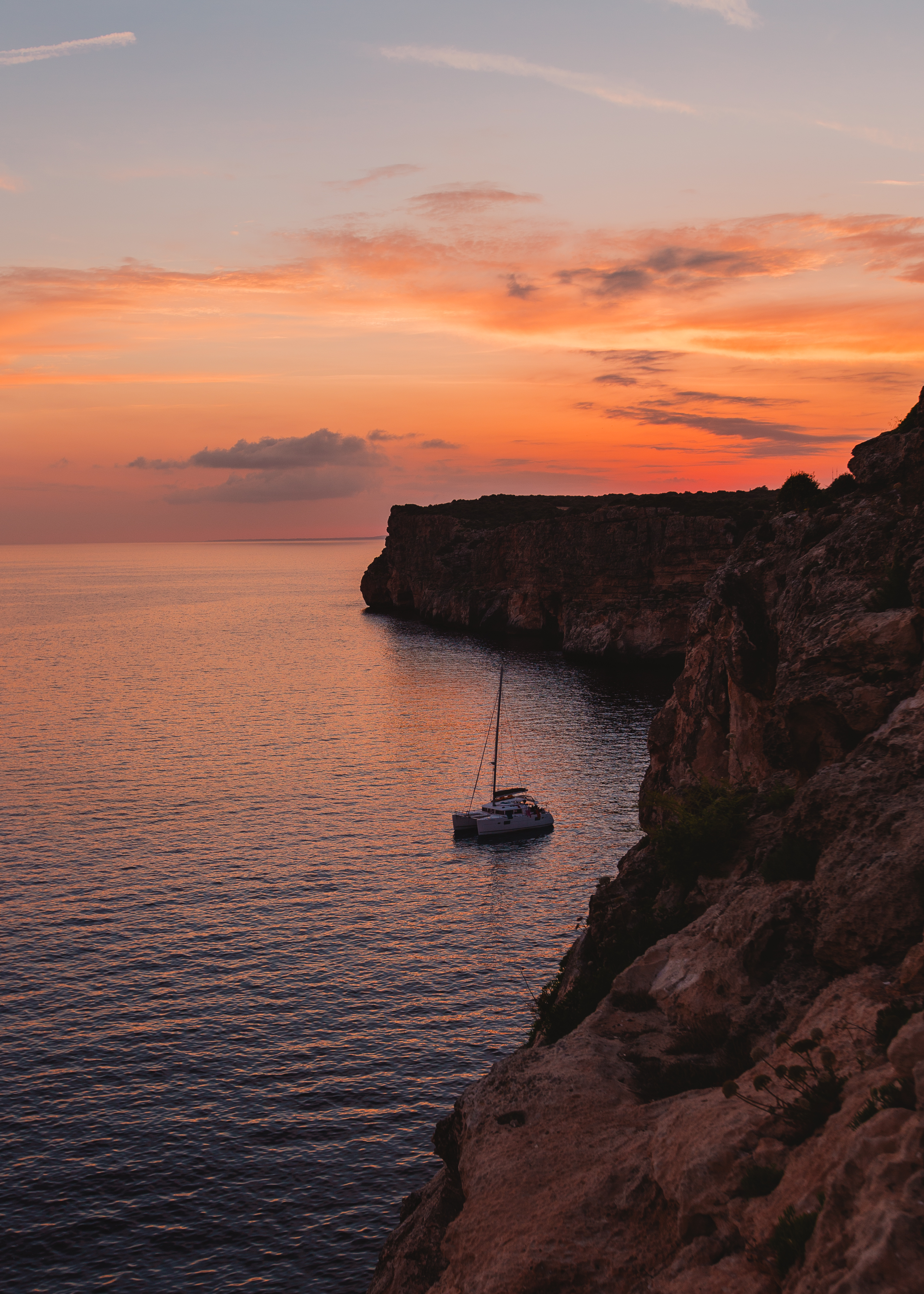 Cala Pregonda, among the prettiest of the red northern beaches, stands out thanks to its rocky islets. Accessible for strong swimmers, it offers a unique view of the coastline. Natural rock formations along the bay create shallow pools, great for younger children while small caves tucked away in the cliffs add to the sense of adventure. To the west of Cala Pregonda is Cala Morell, best known for its prehistoric necropolis. A network of 14 remarkably preserved artificial caves carved out of the walls of a small ravine were used as a cemetery by the Talayotic peoples around 1700 BC until the 2nd century AD, dominated by the Romans. The island itself has many archaeological sites, including the mysterious megalithic taulas – not unlike Britain’s henges and Brittany’s carnacs – but the necropolis of Cala Morell showcases a surprising level of detail with carved pillars, internal divisions and even
