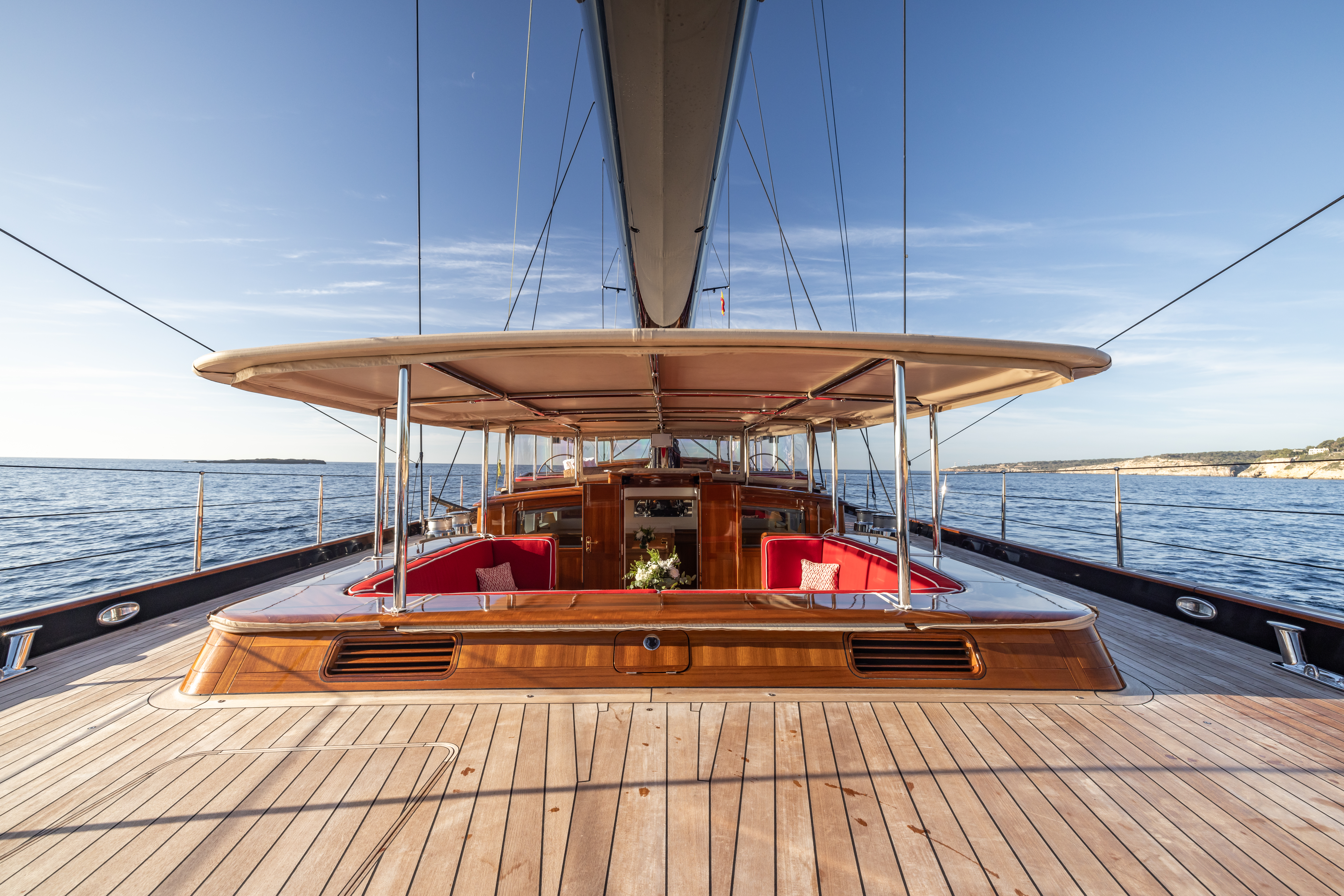 “The 1999 ketch Rebecca was a big influence in the design of Maximus,” says Barrett. “Both her classic deck structures and sheerlines, and the way she sailed and performed well. That’s how Germán Frers was introduced to the owner, but the yacht had to be bigger. There was a certain requirement for volume and cabins and so forth, which brought her up to the 59m mark.”