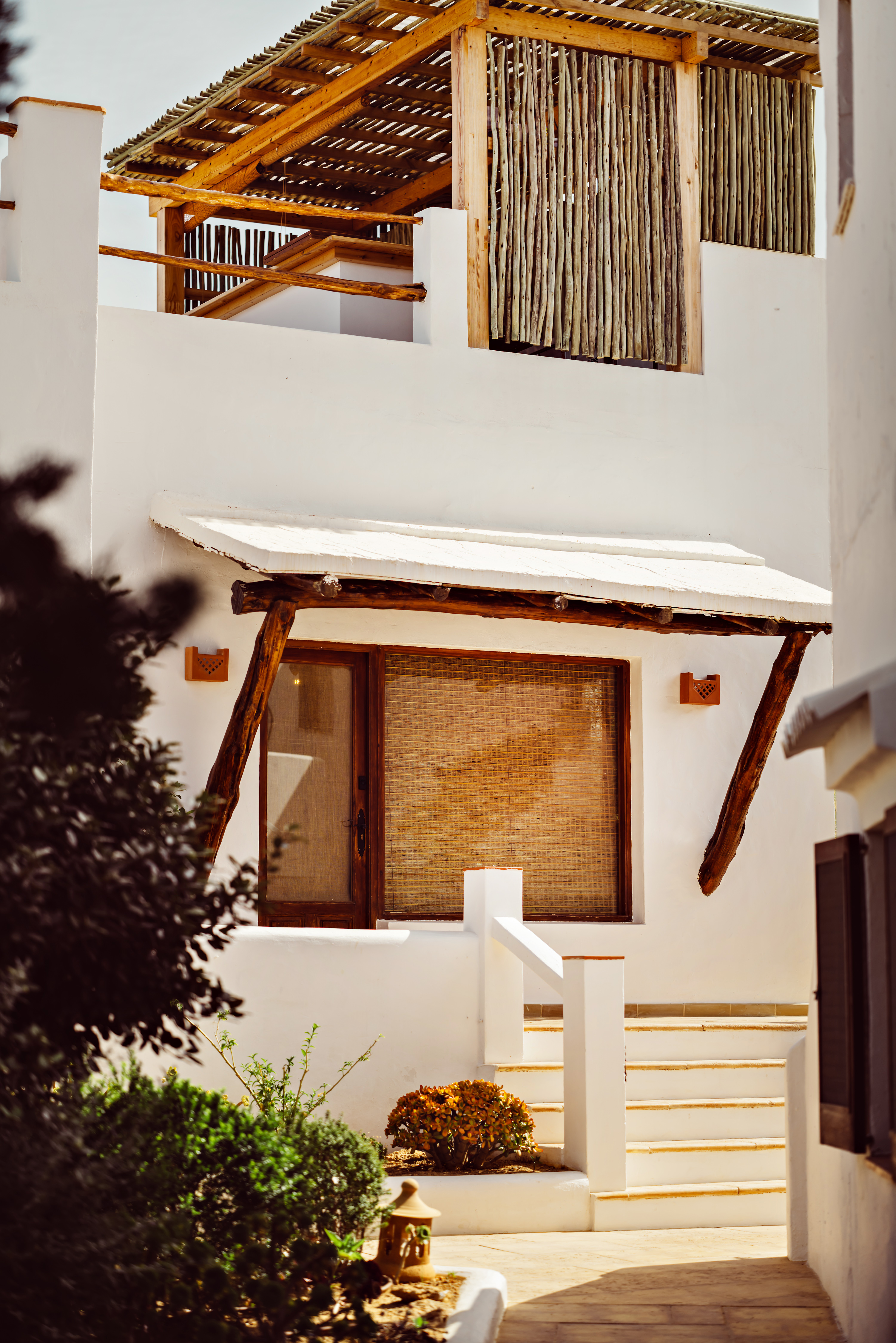 Petunia is intended as a love letter to the island, and the redesign team did that by sourcing collectible vintage furniture pieces from legendary designers of that era, including light suspensions by Achille Castiglioni, Toscanella chairs by Alessandro Becchi and Palm tree mirrors by Vivai del Sud. Custom furniture and décor complement the interiors, made locally with artisans and contractors in woods and ceramic. For local art, they turned to Nathalie Rich, founder of the island’s Galleria Tambien in Santa Gertrudis, and sourced pieces from Ibizan vintage gallery, Chateau