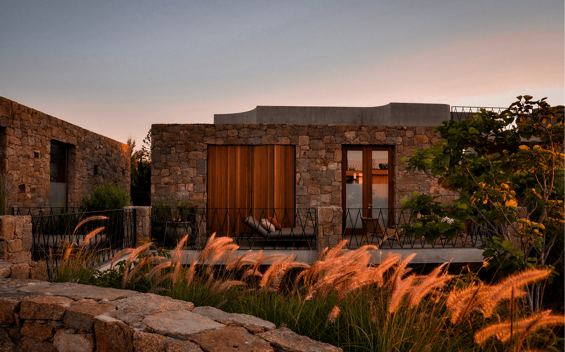 The architecture of the posada reflects the natural environment of José Ignacio, brought to life by Montevideo-based architect Álvaro Pérez. “The guiding sentiment was ‘memories of my vacations in the 60s and 70s on the Côte d’Azur,’” explains Edda, who was also behind the concept and interiors. Using local materials – limestone, natural stone, lapacho wood, concrete and green marble – the design blends nostalgia with modernity. Inside, each space is infused with character, thanks to carefully restored vintage furniture sourced in Uruguay and Argentina. No two rooms are alike, each possessing its own distinctive feel.