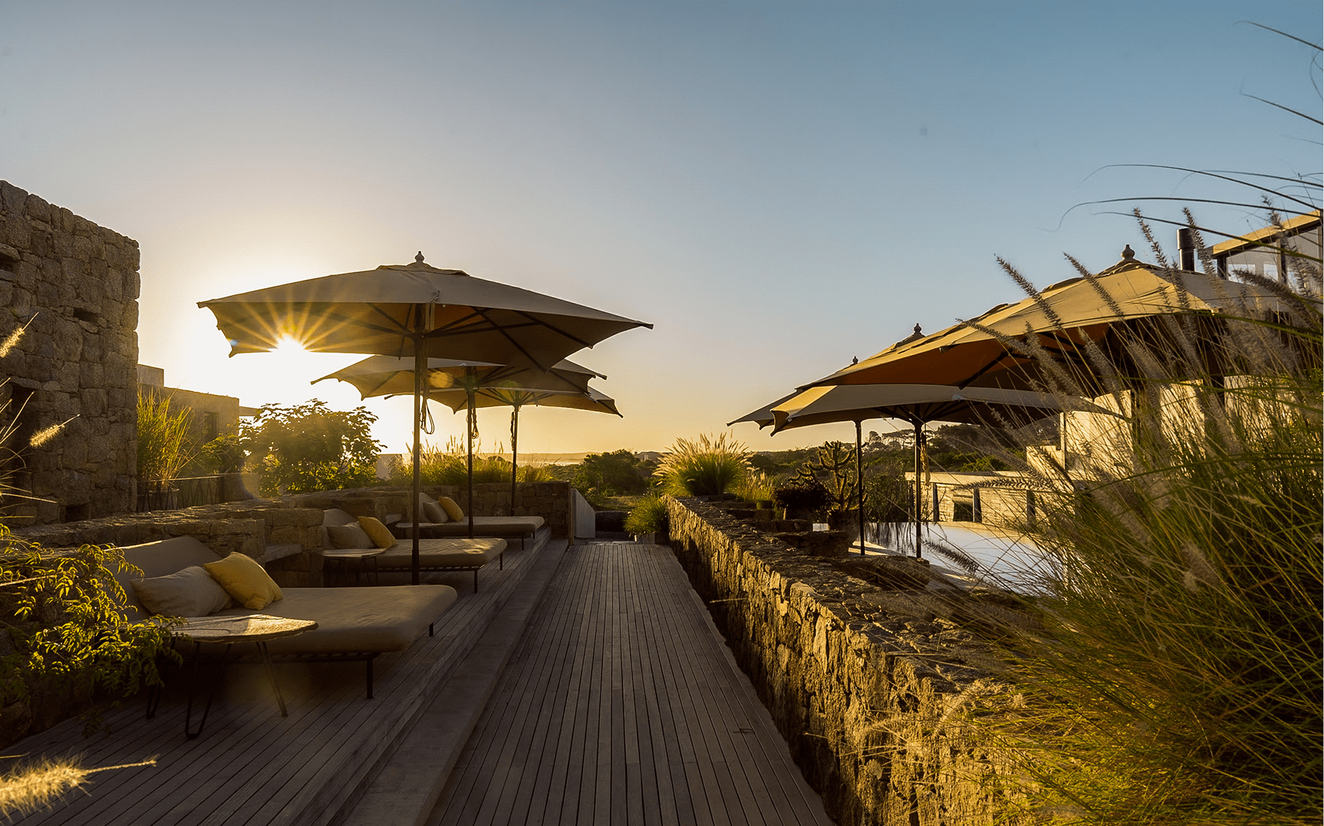 Regional craftsmanship is central to Posada Ayana’s identity. “From the start, I was getting in contact with various artisans,” says Edda. Breakfast dishes and coffee cups were handmade by Montevideo brand Alfe, while Marcela Jacob, an Argentine ceramicist living in Uruguay, crafted the dinner plates. Hugo Gonzales, a local wool spinner, produced the hand-dyed woollen bed throws, and Susette Kok, originally from the Netherlands but a Uruguayan resident for more than 20 years, created clay vases and porcelain tea cups. Even the guest beds, tables, sunbeds and lounge furniture were custom-designed by the family and built by nearby carpenters. “It was and remains essential to me that sustainability is not only a word, but the leading concept for all possible instances,” Edda notes.