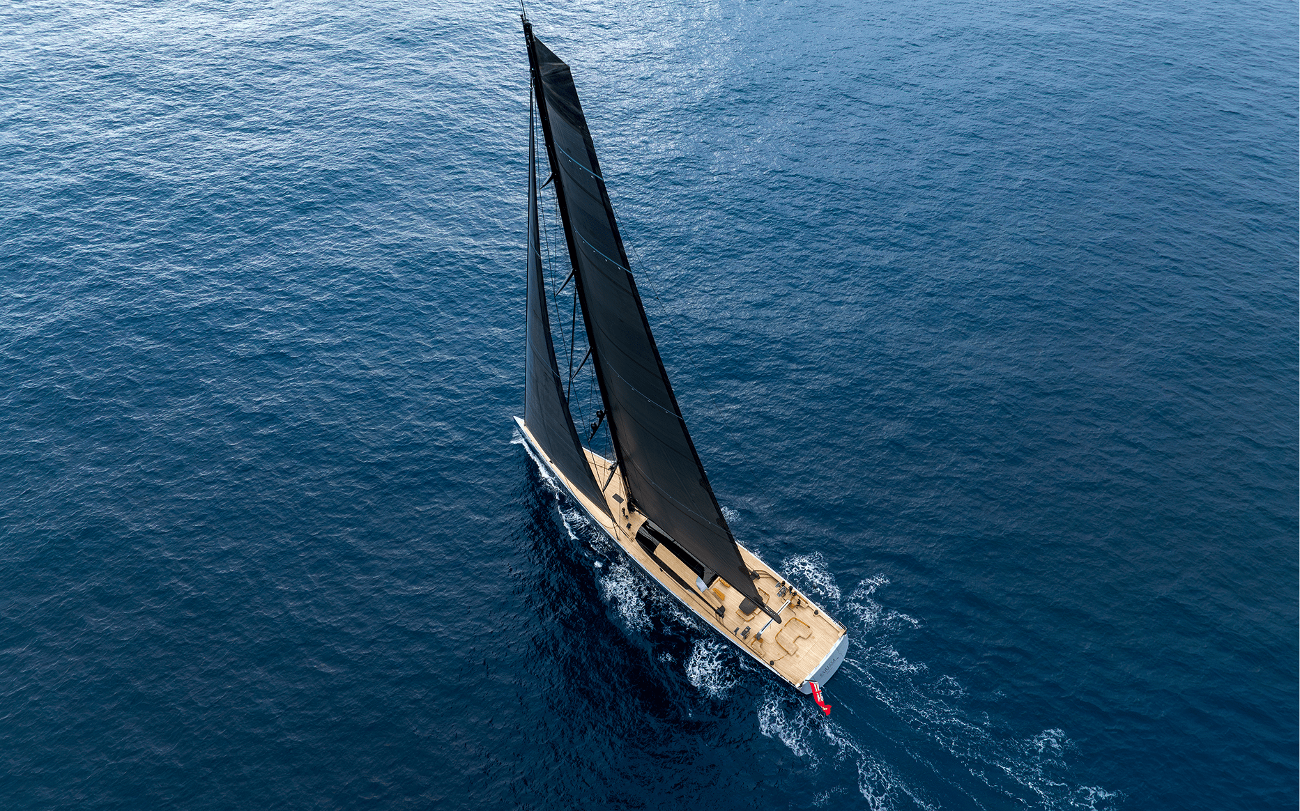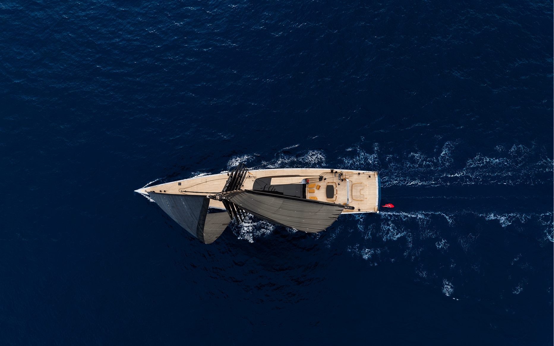 Another key performance feature is the dual retractable propulsion system, developed by Hydrosta. The Captain raises the first drive as soon as the main is hoisted, then the second once the sails are well set. “It means she gets up to speed very fast,” says Cook. “Once the propeller units are retracted, there’s really not a lot under the hull apart from a deep keel and the two rudders. If we’re reaching, we’ll easily be doing 20 knots and we haven’t really pushed the boat yet – we’ve been very cautious, it being just her second year in the water.”