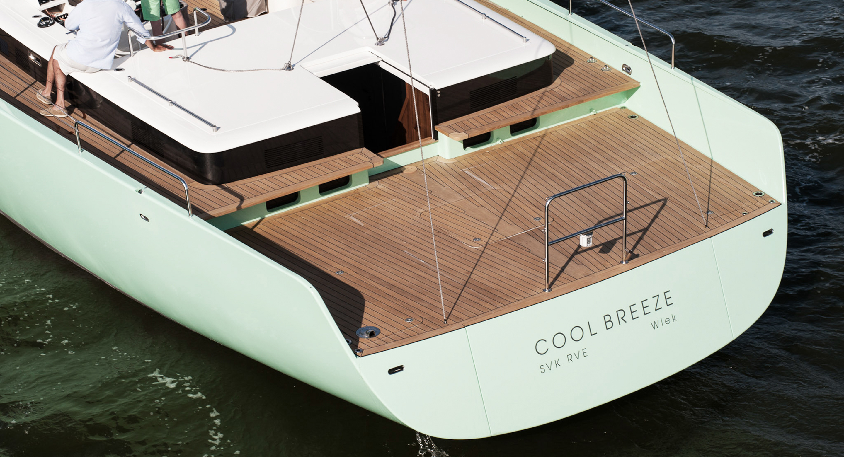 Of the four yachts, the Café Racer from Baltic makes the most ground when it comes to environmental concerns; mounting a substantial array of solar panels on its beamy coach roof, these alone can keep up with the house load sand a minimised AC energy requirement. Reduced reliance on the electric motor is an intended upside of a yacht that is easy sail use and dialled in on performance, but the endurance of the two 36.8kWh battery banks can be bolstered by fast charging from the micro turbine range extender. A common element in EV’s for several years now, this turbine does exactly what the name suggests and has been developed to generate a full charge in an astounding 30 minutes whilst achieving the cleanest exhaust output. Decked in sustainably sourced Cork from Portugal, the feeling under foot alone is something different when stepping aboard. The 50% structural mass in Flax is less obvious to the naked eye, but items of feature trim in this bio-composite allude to the un-conventional nature of the boat.