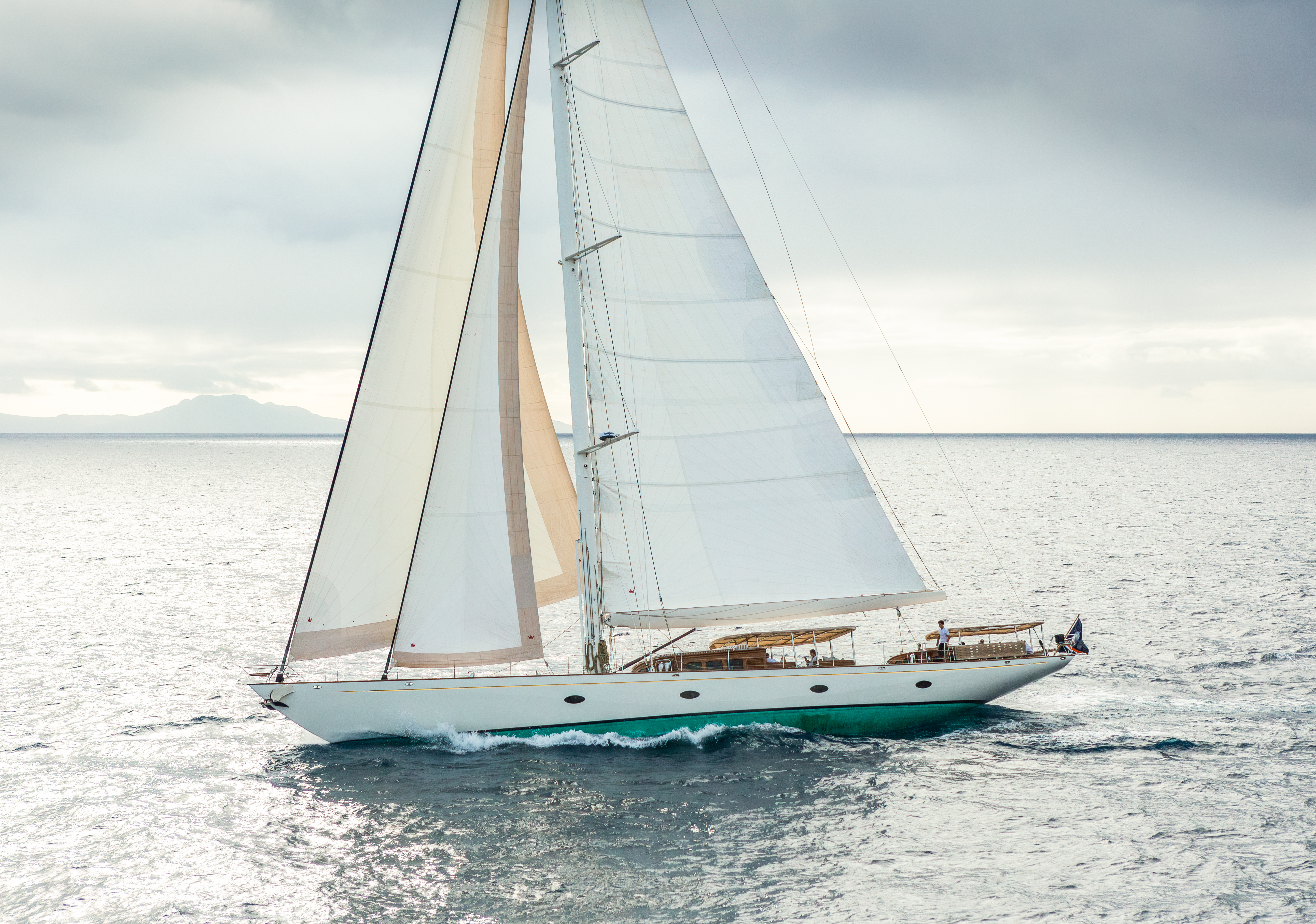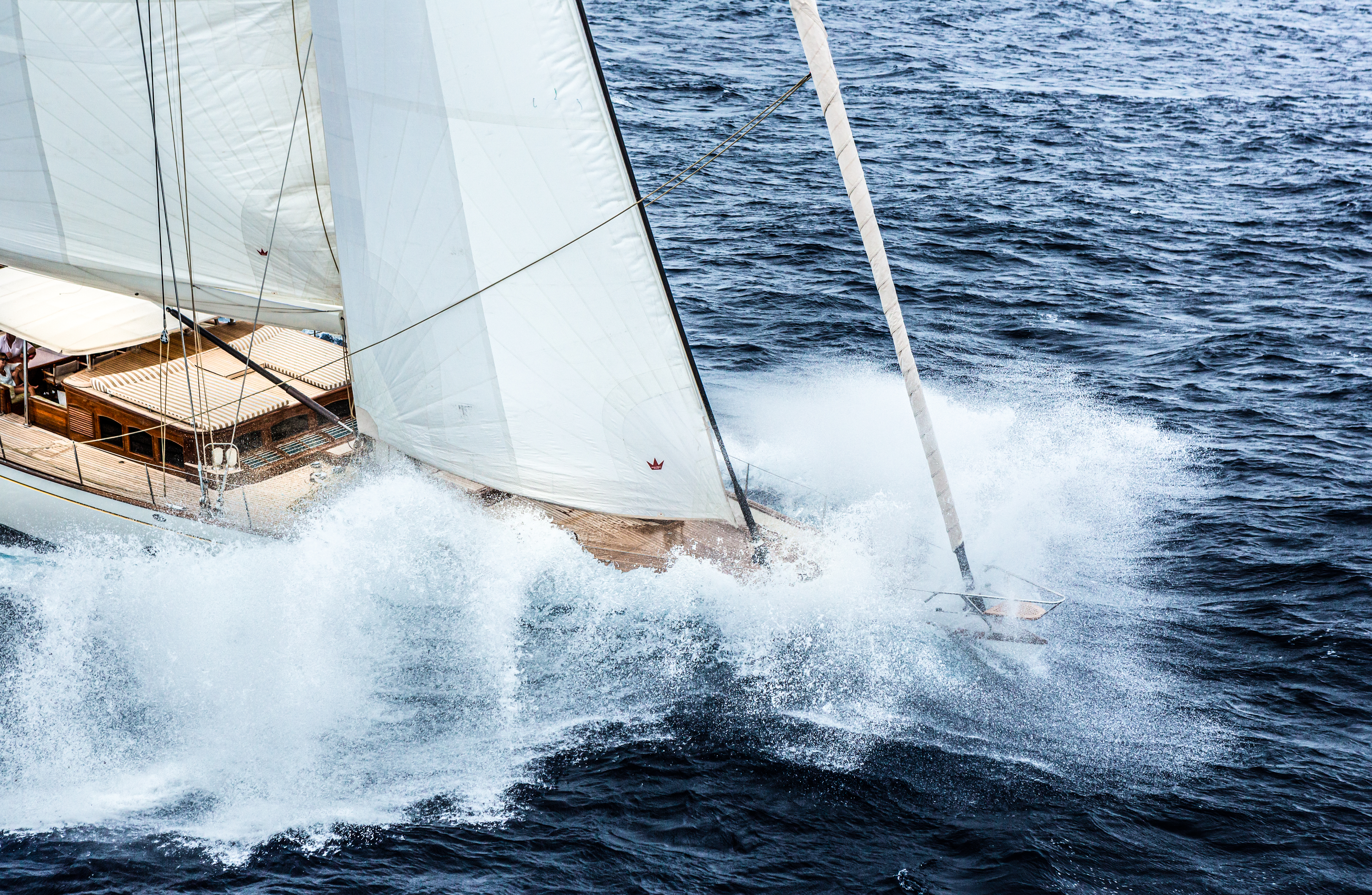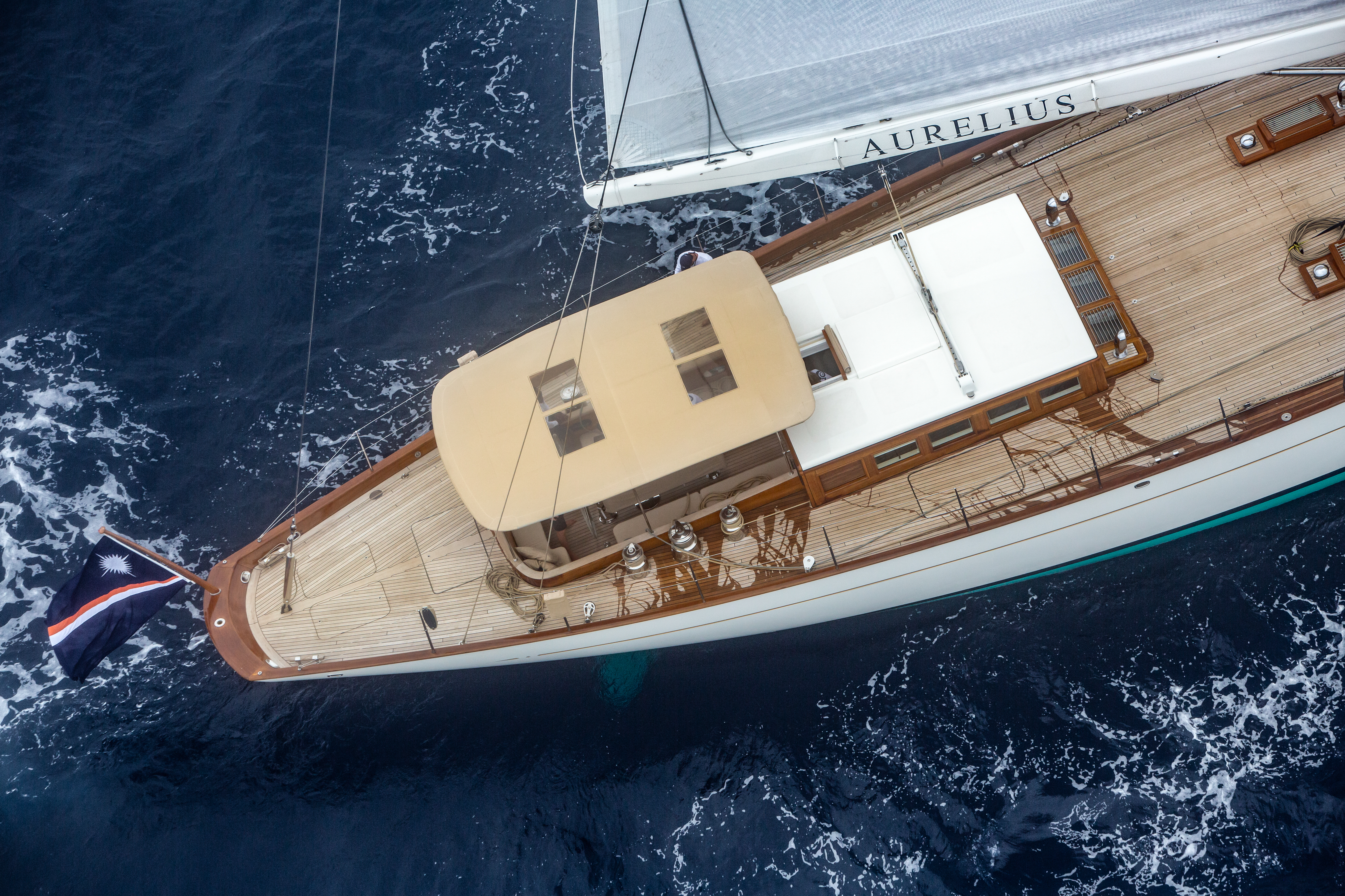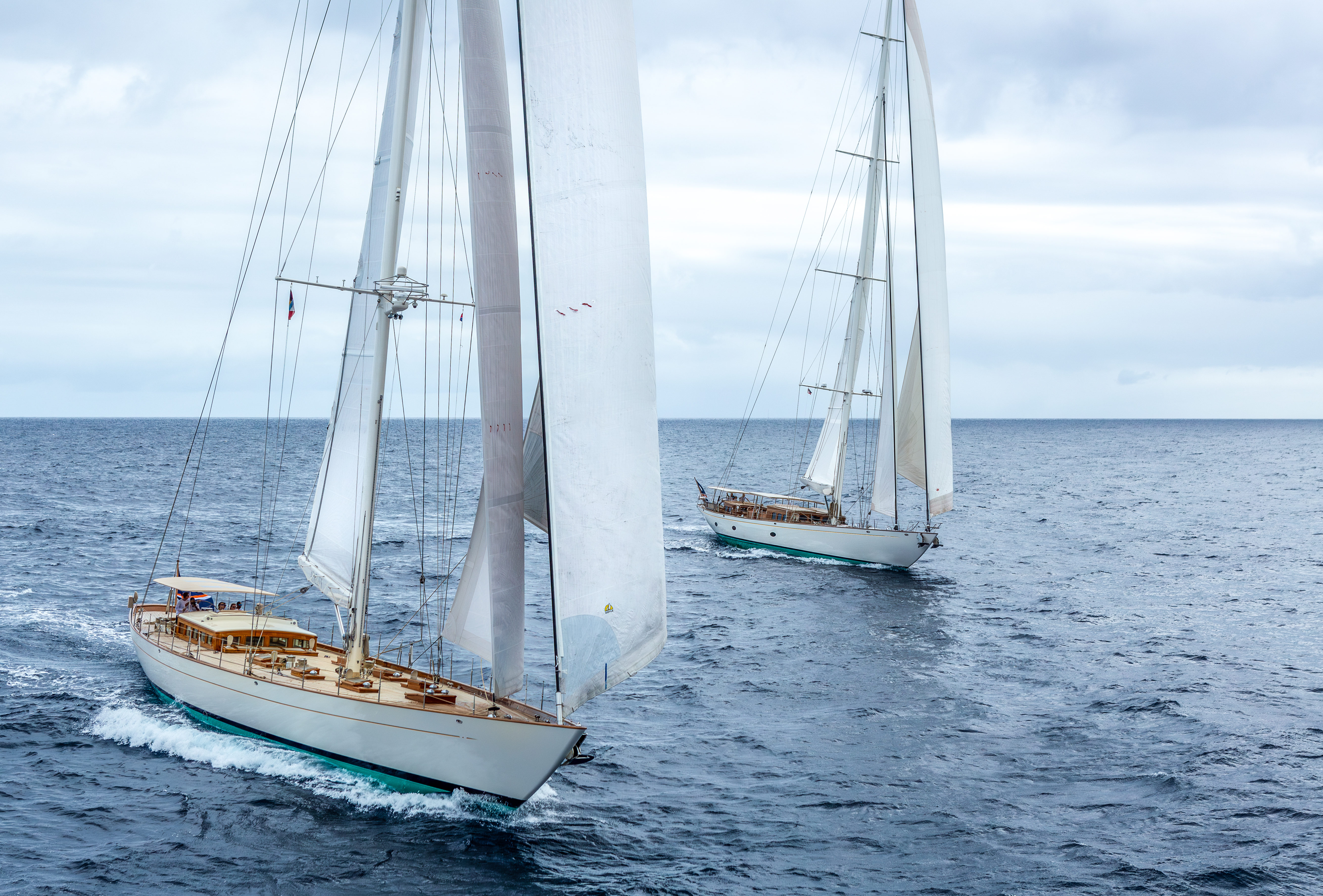 Also there in St Barths, likely competing in the same class as Namuun, will be Aurelius – the second of our two modern classics. She is a serious rival, and not just due to her few extra feet of waterline length. Aurelius was developed with extremely efficient underwater geometry and a fluid deck layout for racing by the same team at Dykstra who breathed life into the new generation of J-Class racers. They have a natural feel for performance and race handling.