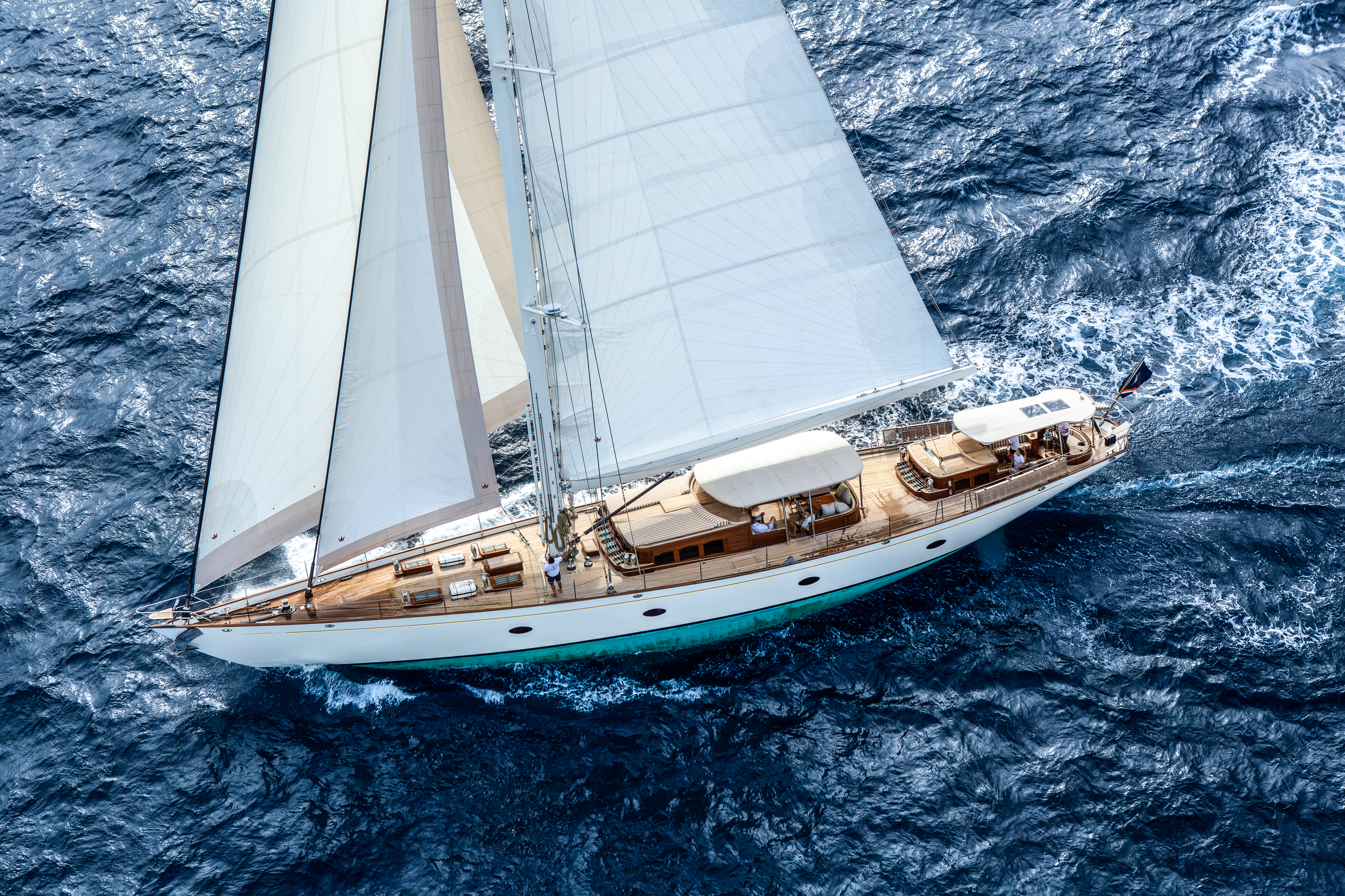There are no finer designers of sailing boats that combine classic looks with cutting-edge performance than Dykstra and Hoek. Usually built in aluminium, they are grandes dames above the waterline and hydro-dynamic rockets below it – Rolls Royce meets McLaren. Their owners and crews know that they are capable of stand-out performances – and the rest of us are content to watch. Or you can perhaps do both – control the yacht and marvel at it simultaneously – as Namuun’s owner says wistfully: “I know I’ve got a boat that’s really pretty if I’m in the tender and I can’t help looking back.”